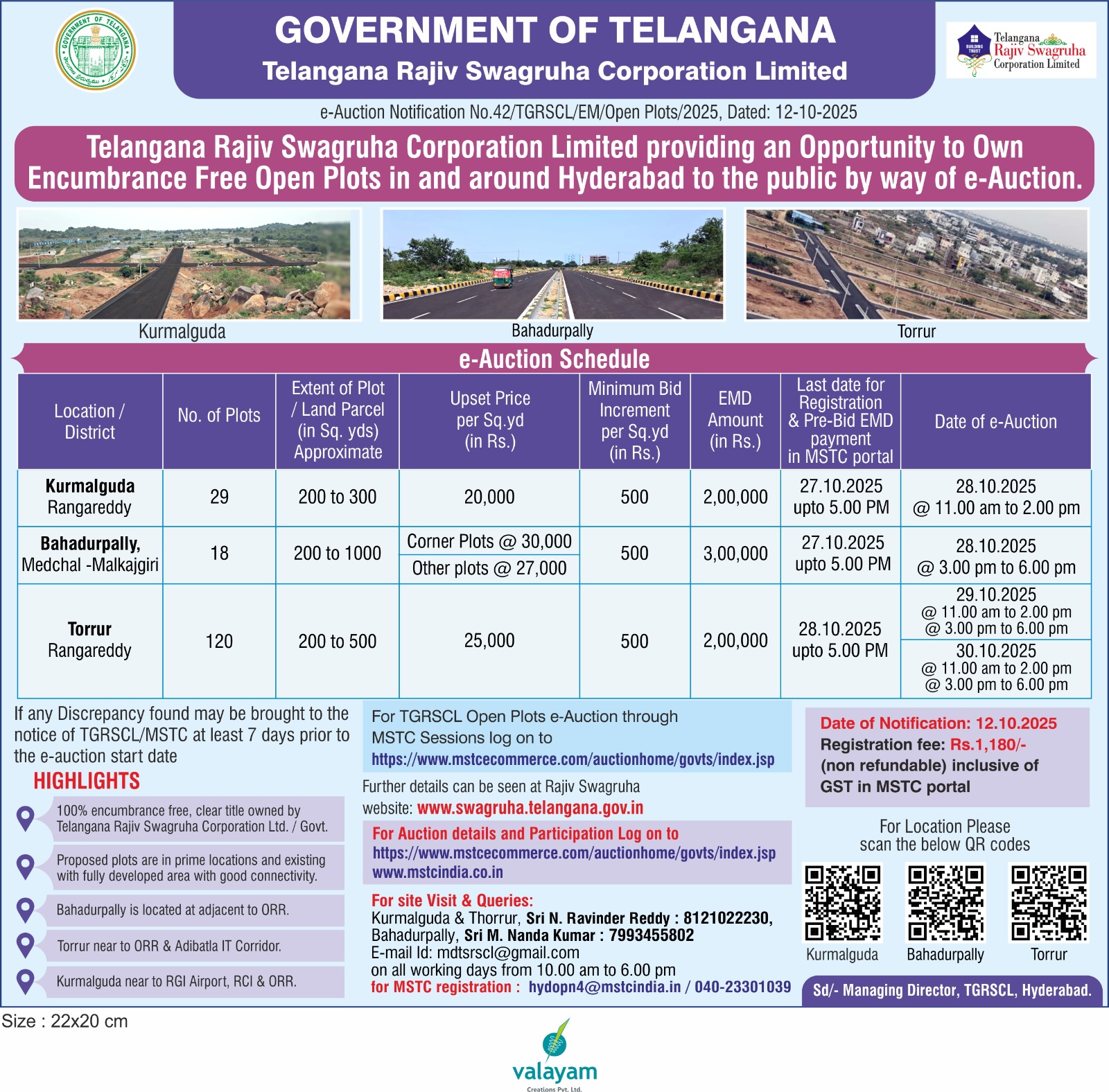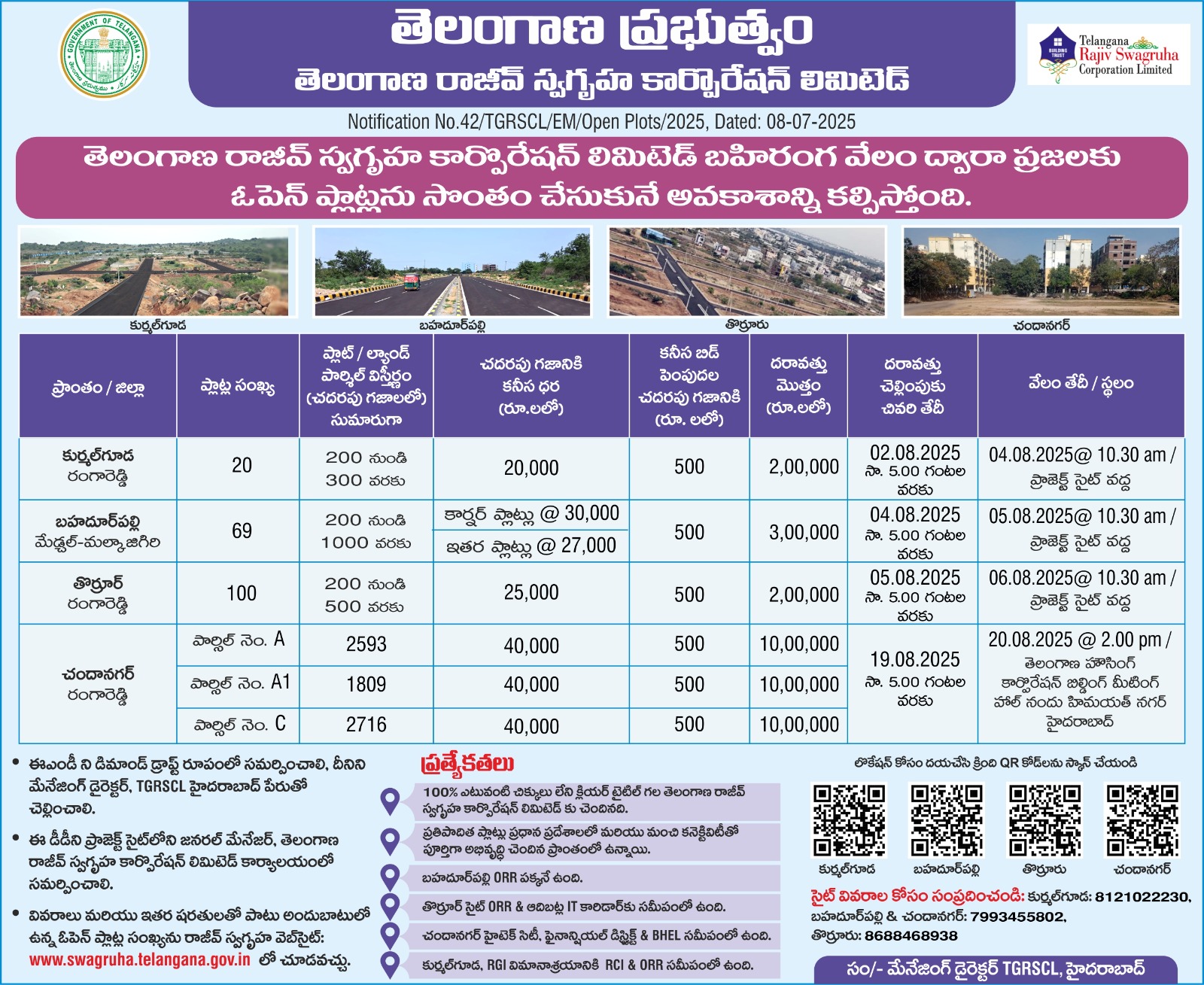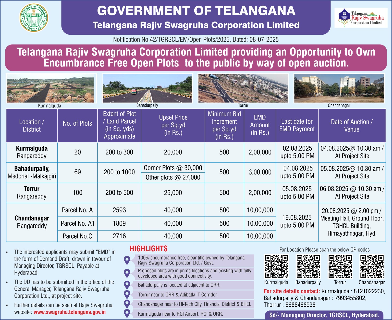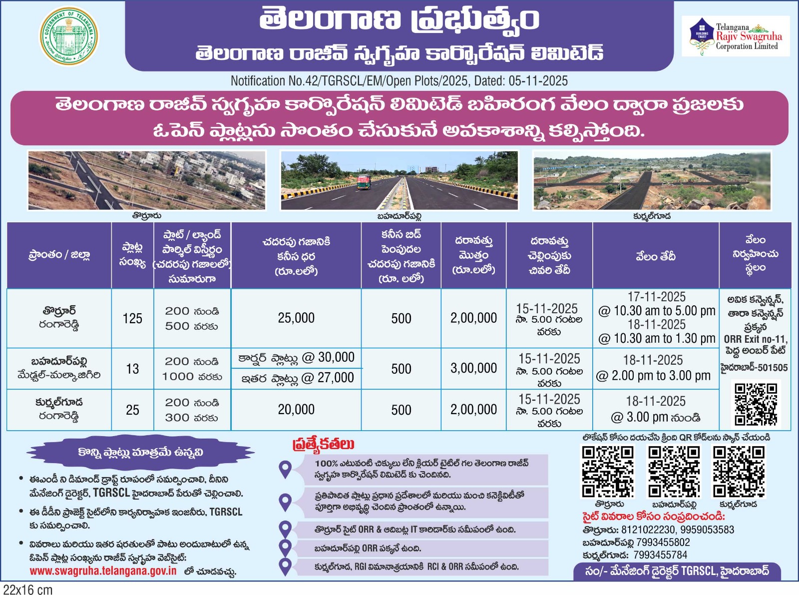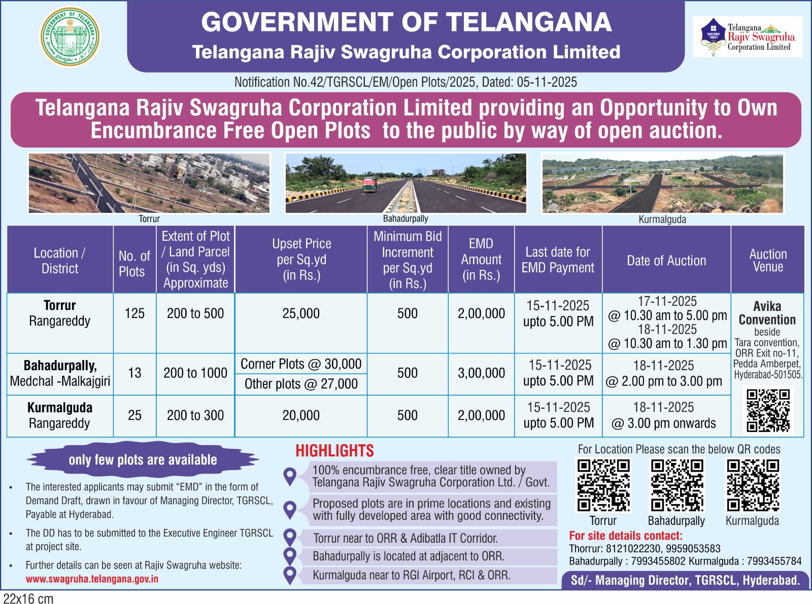 Allotment of Open Plots at Kurmalguda, Bahadurpally, Torrur