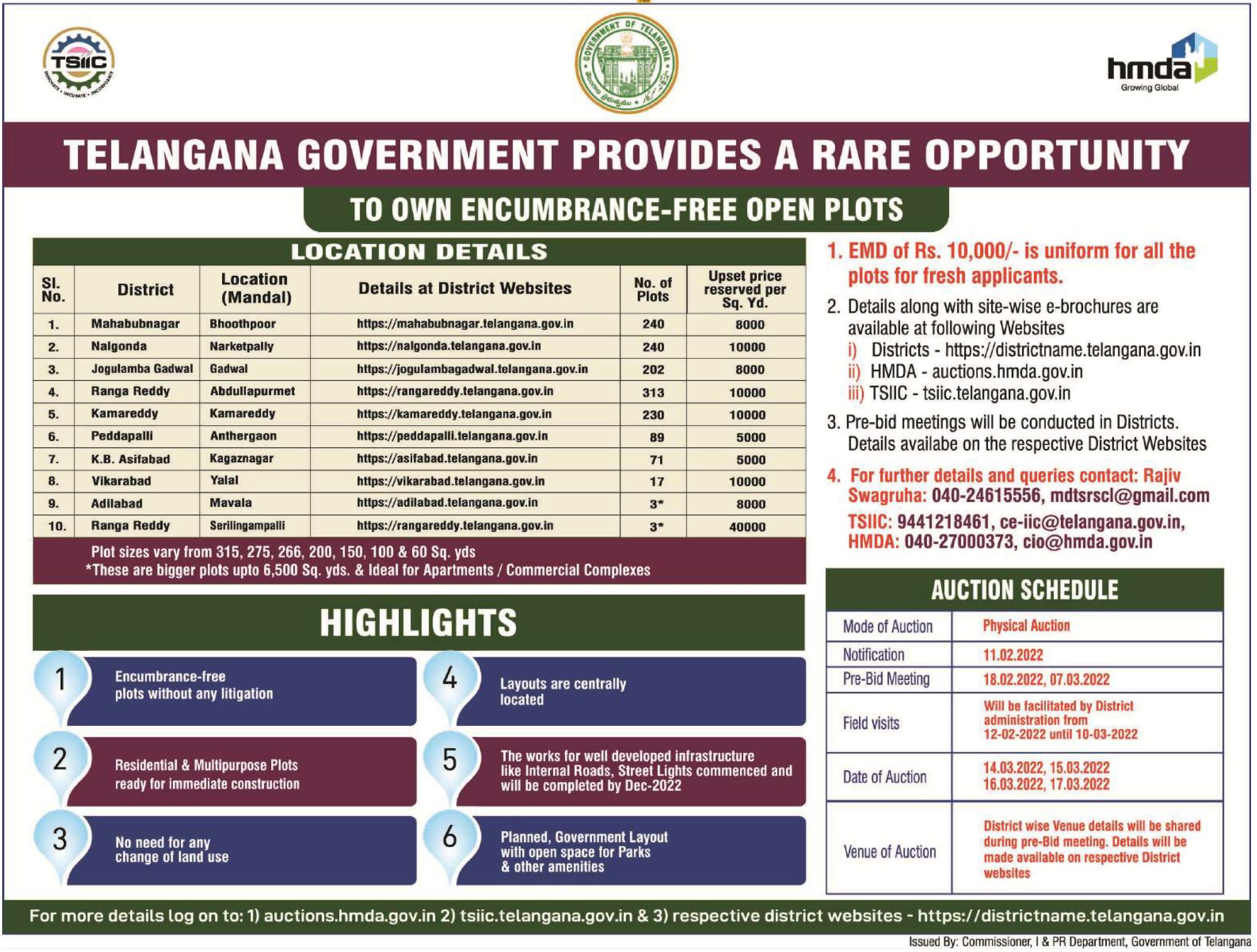 | 2/TRSCL/2022 | Namasthe Telangana - Sale of open plots of Telangana Rajiv Swagruha |